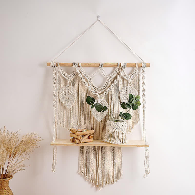 Olivenorma Boho Woven Tapestry Wood Shelf Wall Decor